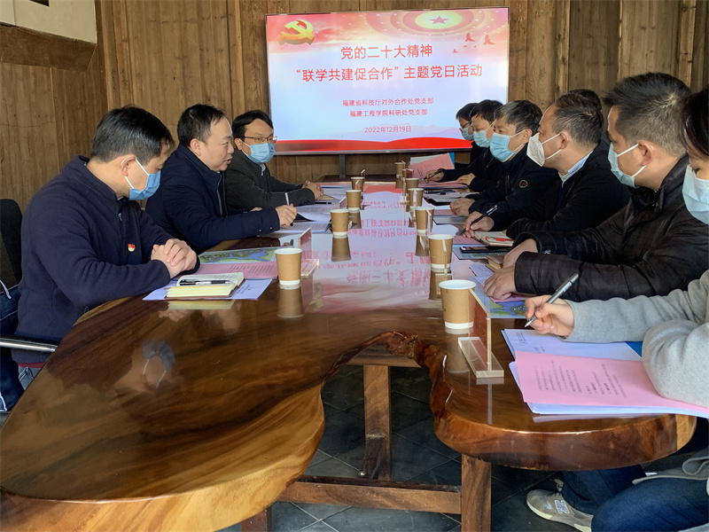 12月19日,为深入学习贯彻党的二十大精神和习近平总书记来闽考察重要讲话精神,落实省委十一届三次全会决策部署,进一步拓展“创新云+海丝红”党建品牌创建活动,神马影院 党组成员、副厅长黄舒以普通党员身份参加神马影院 对外合作处和福建工程学院科研处党支部联合开展党的二十大精神“联学共建促合作”主题党日活动并调研。福建工程学院校长童昕出席活动。