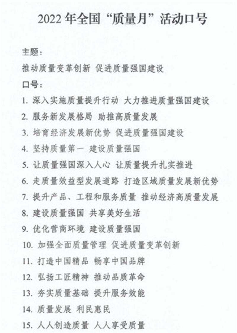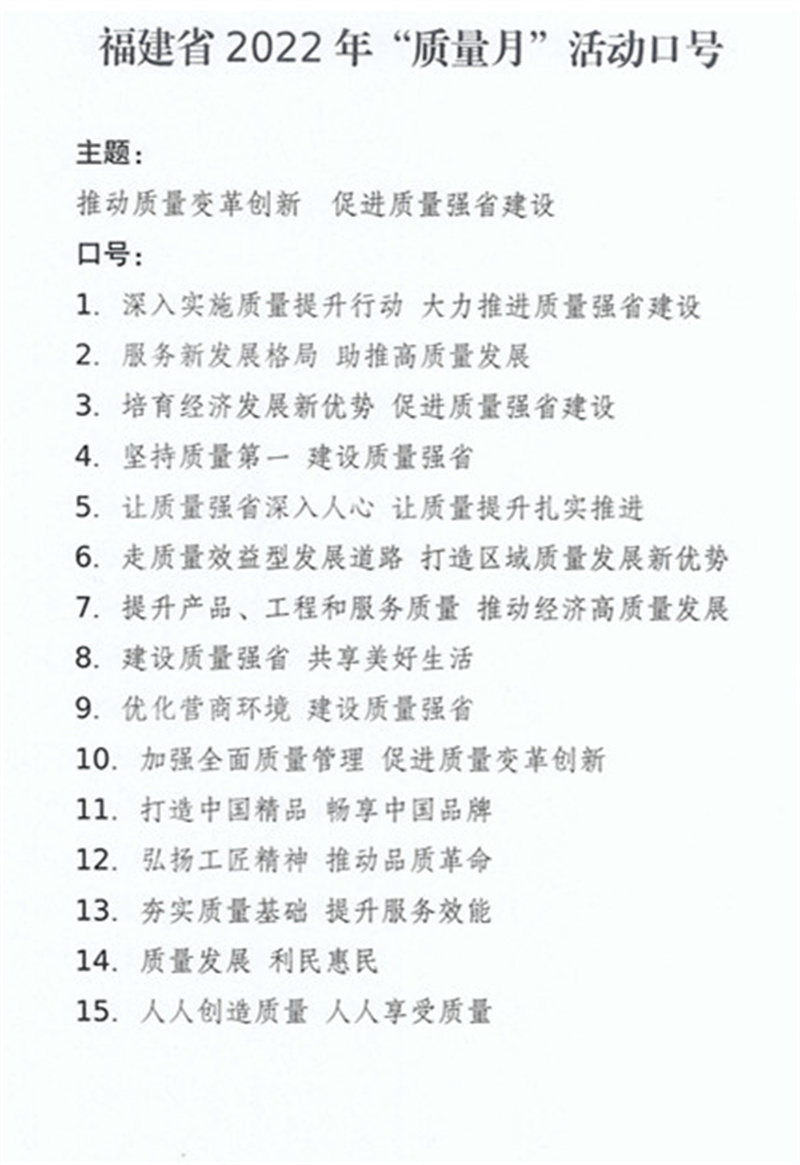 2022年全国“质量月”活动口号 福建省2021年“质量月”活动口号
