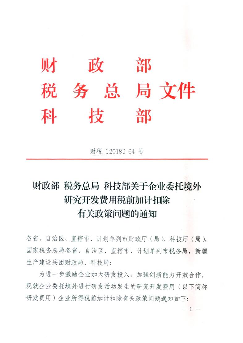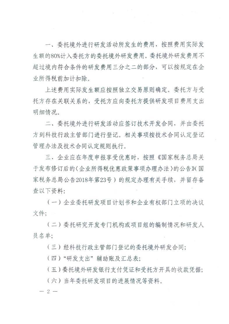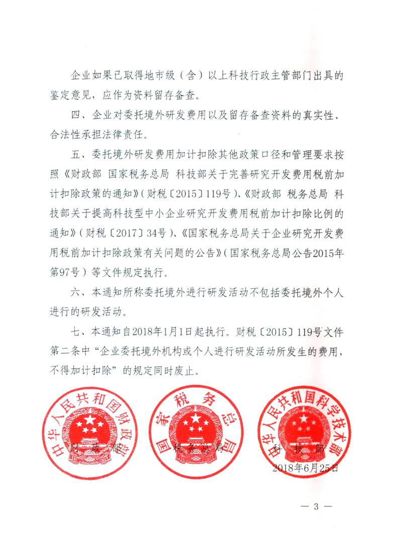 财政部 税务总局 科技部关于企业委托境外研究开发费用税前加计扣除有关政策问题的通知